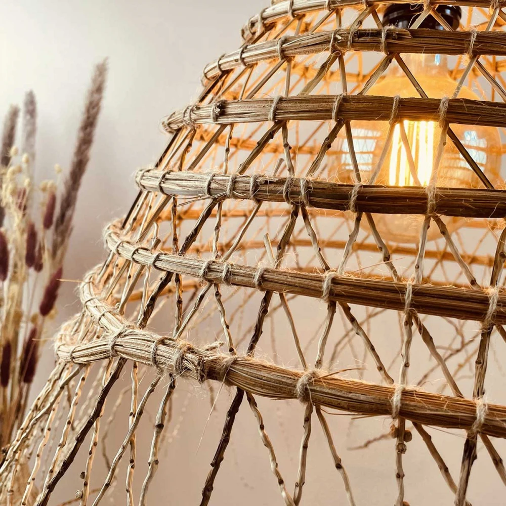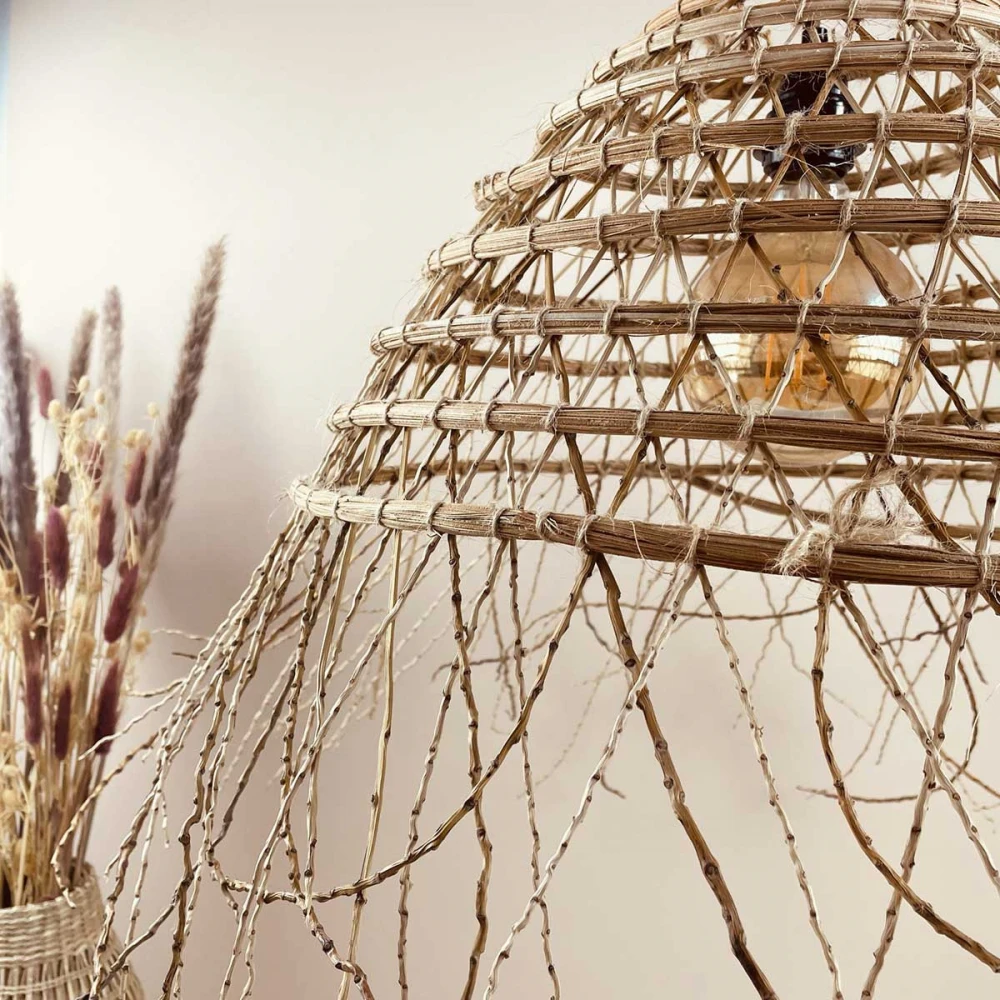Une forme arrondie avec ce dôme naturel, une suspension tunisienne typique. Tout le savoir-faire artisanal tunisien, l’art du tressage et l’authenticité sont réunis pour ce luminaire fait main.