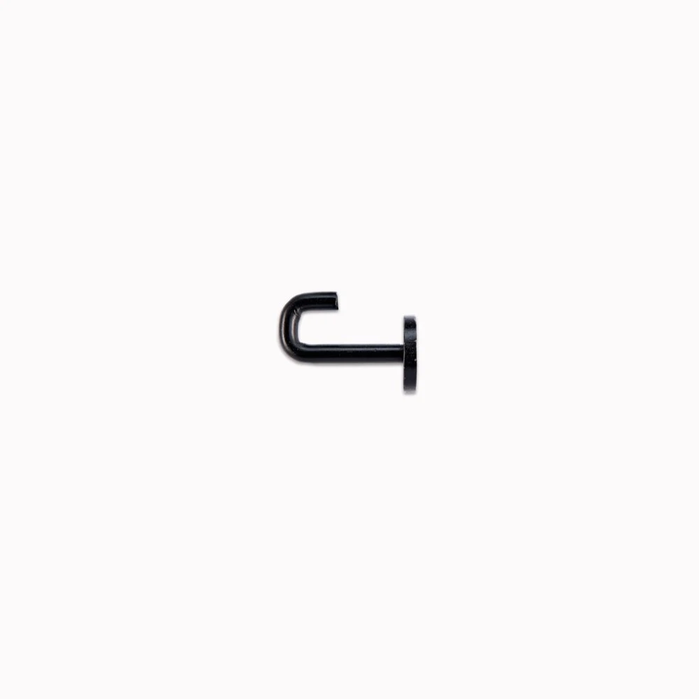 Crochet court, ou patère en métal faite à la main, pour suspendre Manteaux, vestes ou tout autre vêtement… Le produit est en métal noir mat et rustique, ce qui lui donne une allure irrégulière et artisanale.